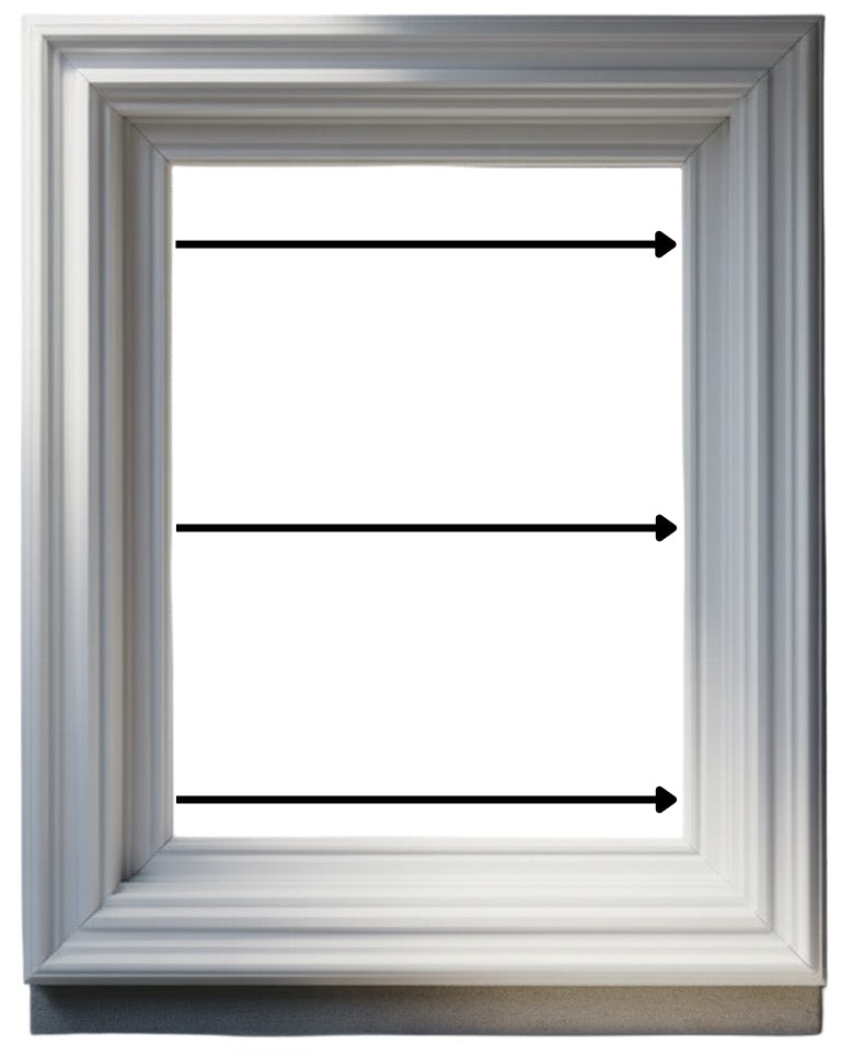 Omdat een kozijn niet altijd overal exact even breed is, moet de sponingsmaat op drie verschillende plekken worden gemeten: