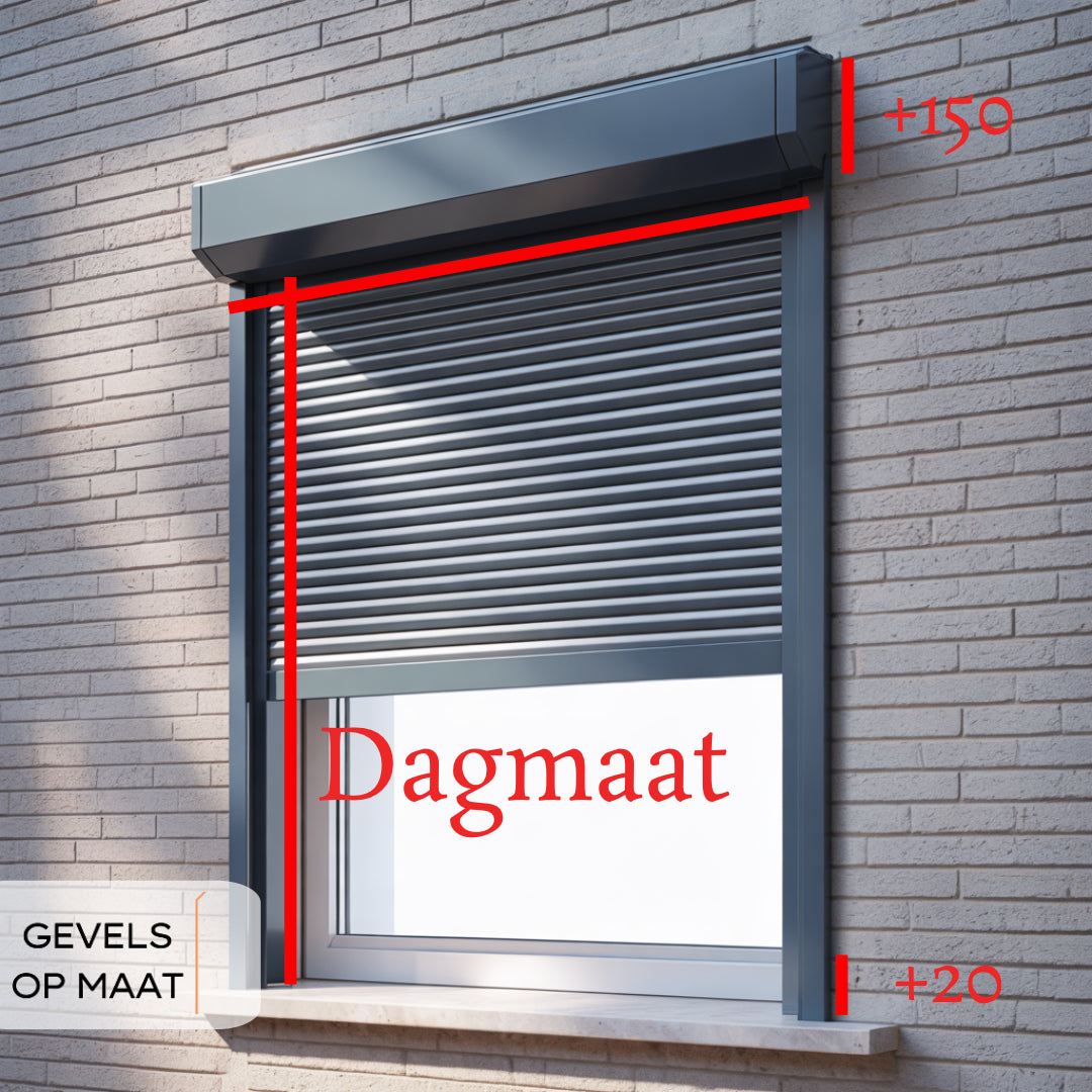 Om ervoor te zorgen dat jouw rolluik perfect past, werken we met de dagmaat en de bestelmaat om ervoor te zorgen dat jouw rolluik perfect past.