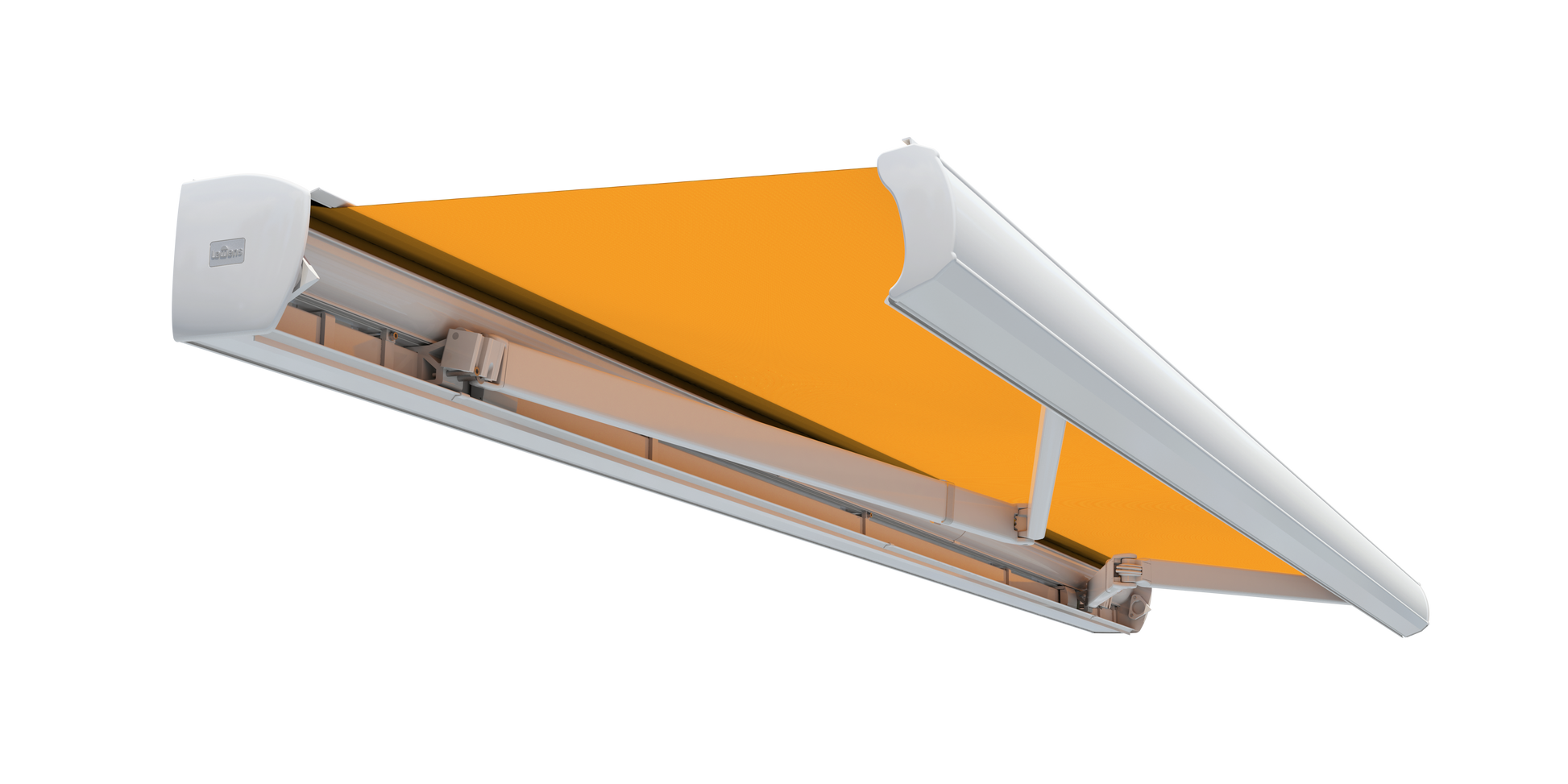 De vario volant is een verstelbare variant van de standaard volant. Met de vario volant kunt u de hoogte van de uitrolbare strook stof zelf aanpassen. Dit maakt het mogelijk om de bescherming precies af te stemmen op uw behoeften en de positie van de zon.