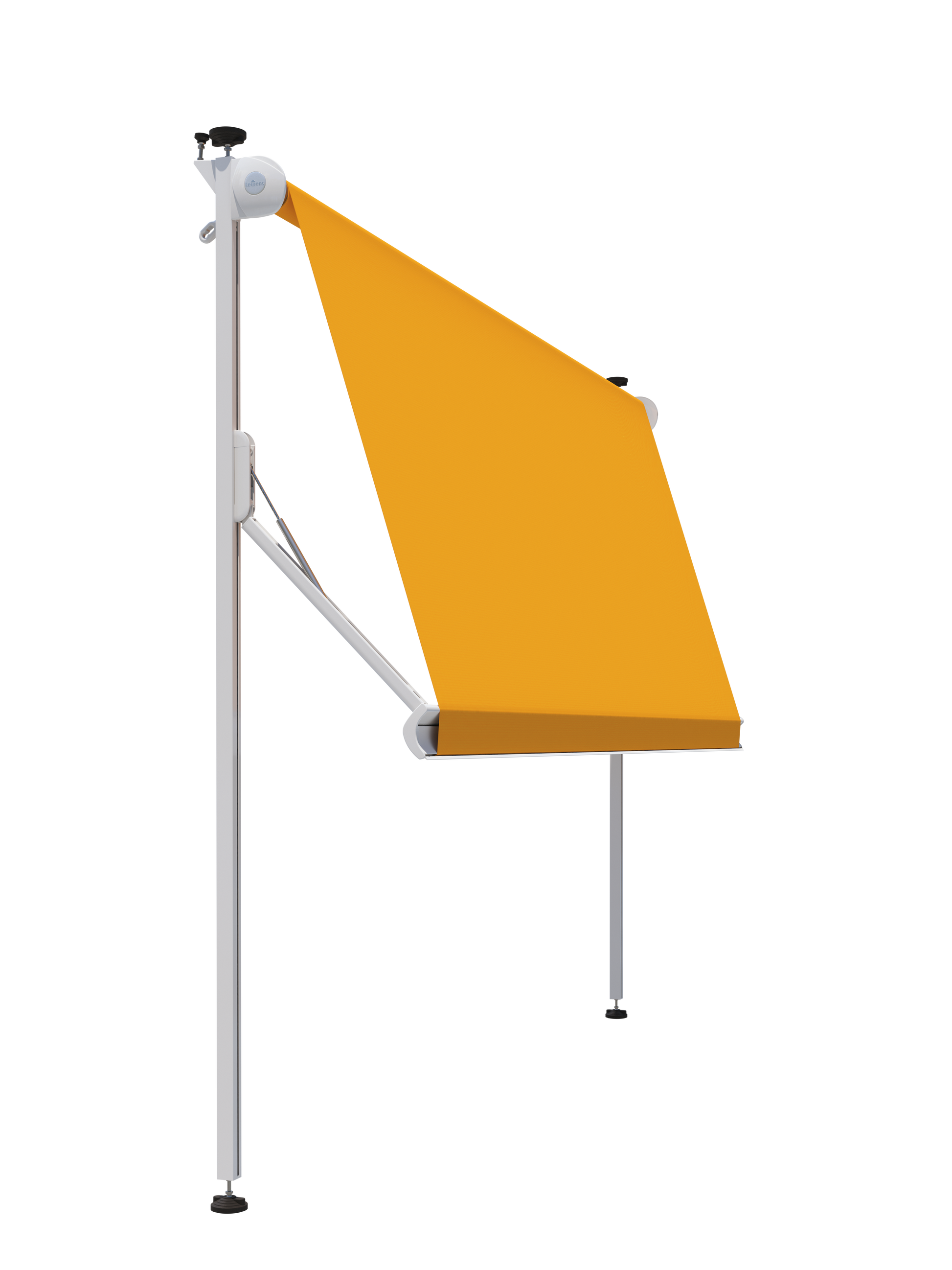 Bij huurwoningen is de bevestiging van knikarmzonneschermen dikwijls een probleem, omdat het meestal niet is toegestaan in de buitenmuren te boren en zware pluggen aan te brengen. Hier is de klemzonwering Micro 150 de ideale oplossing, omdat deze gewoon tussen plafond en vloer wordt geklemd.